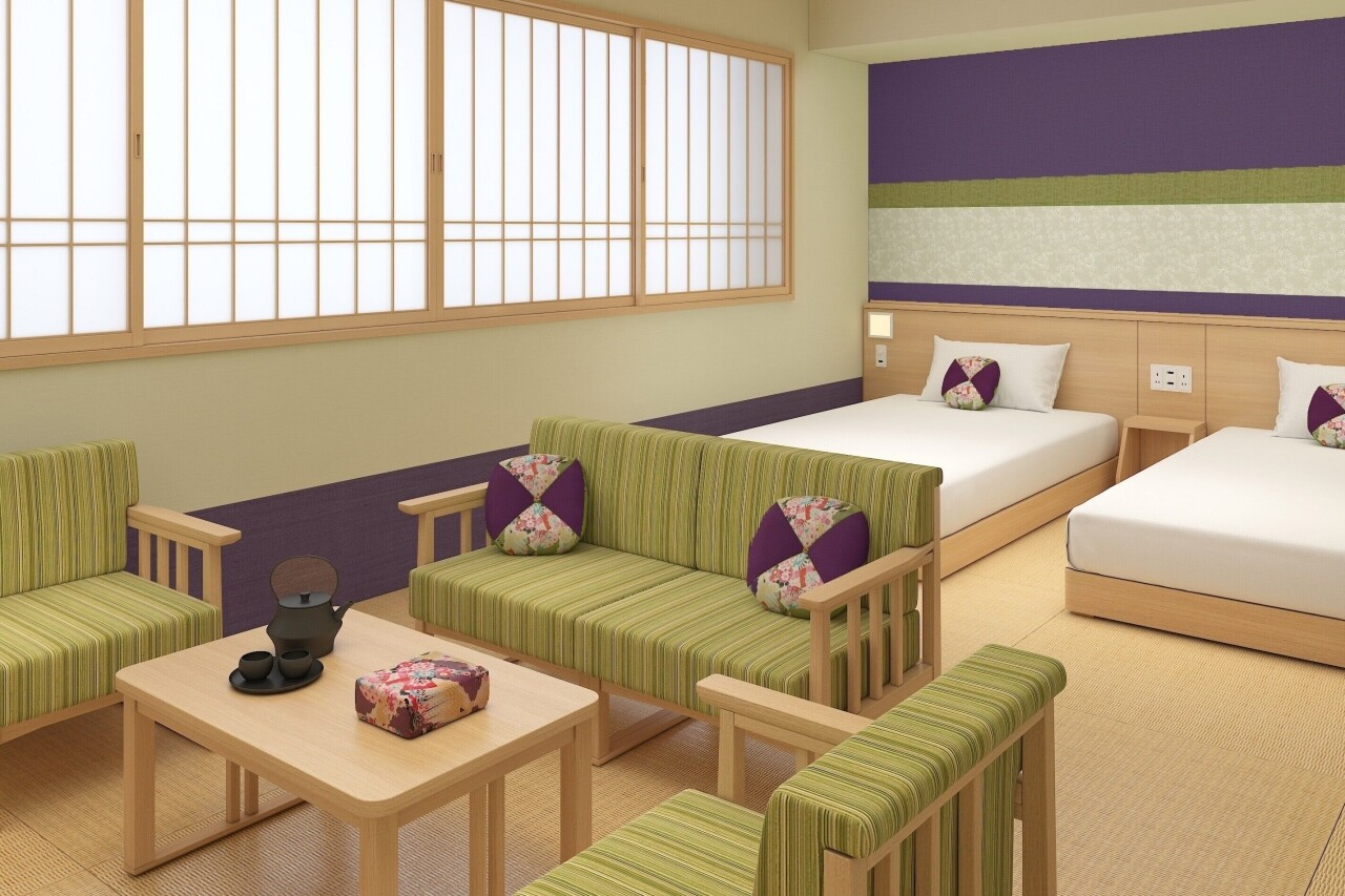 Kumamoto Onyado Nono offers nine spacious family rooms, each furnished with two single beds and two futon mattresses, accommodating up to four people. These rooms can also be used as spacious double suites. (🔎Booking prices and accommodation reviews:agoda|booking.com|Trip|klook)